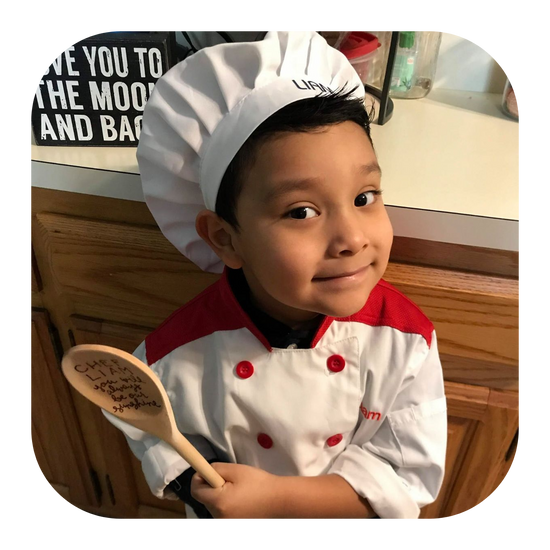 Hello my name is Liam and I am six years old. I have enjoyed cooking with my family since I was 3 years old. My favorite ingredient in the kitchen is creativity. I love to make messes in the kitchen! Inventing new recipes and tasting my creations is my favorite part.